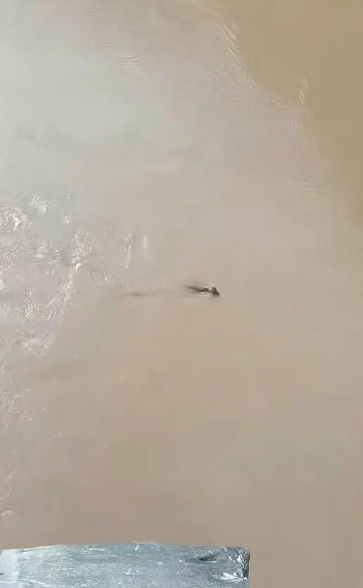 视频显示,有黄色不明生物在虎跳峡水中游,形状不像鱼类,头上有角,身长而直。视频拍摄者惊呼:“是龙吗?”